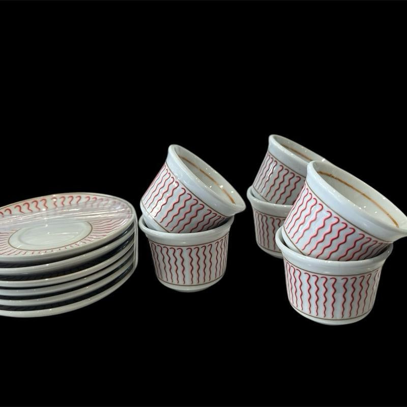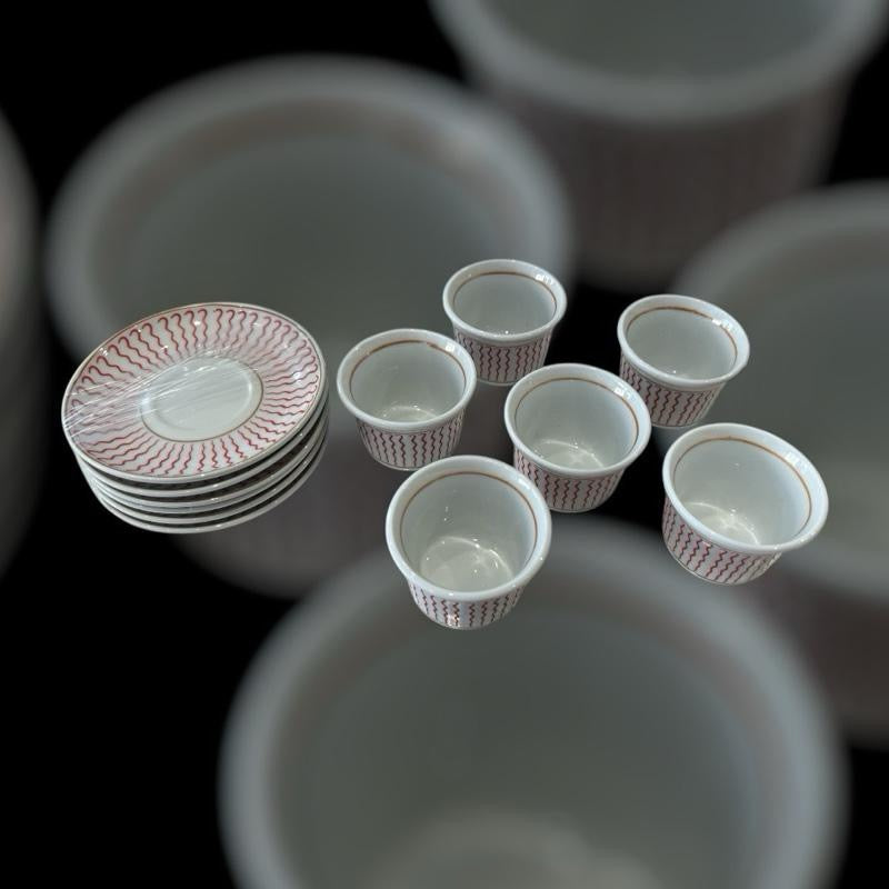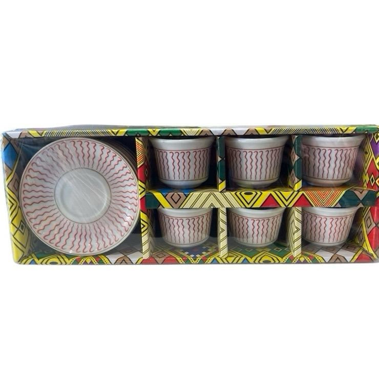 Ethiopian/Eritrean Coffee Cups Set, Edition 18 Pieces. Traditionally designed fine porcelain cups and saucers by EthioDesigns. Set Includes 6 Cups, and 6 Saucers.