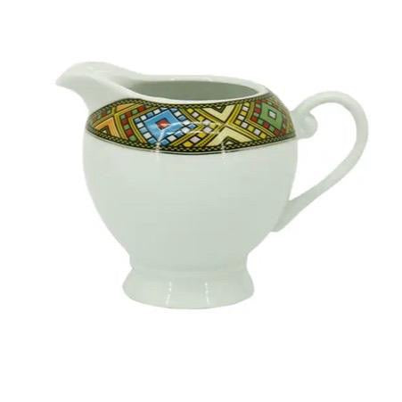 - White decorated Jebena Coffee pot With lid in Tilet Design