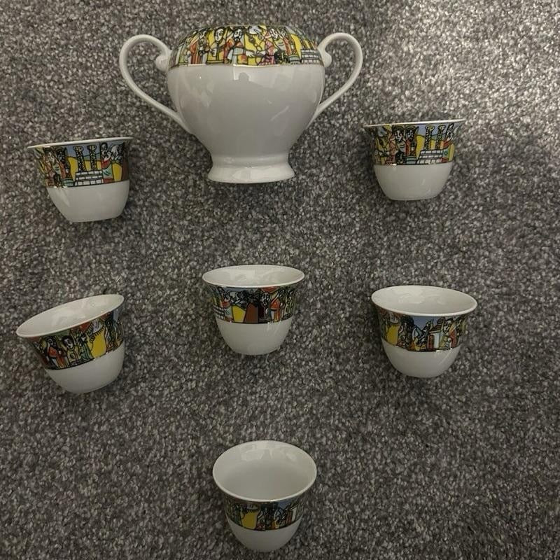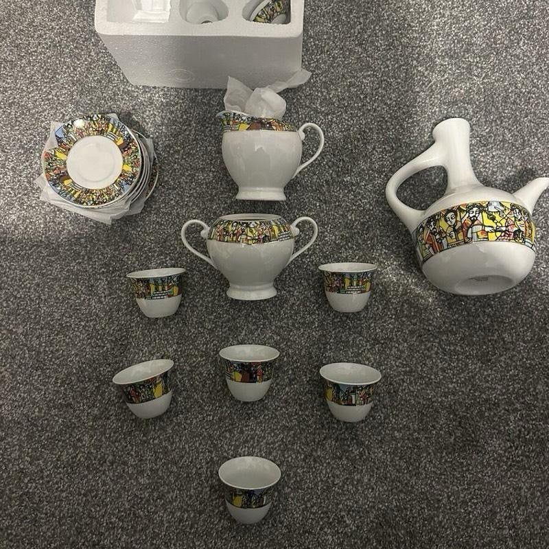Ethiopian Saba Jabena Coffee Pot & Cups Set | 17-Piece Porcelain Coffee Ceremony Set