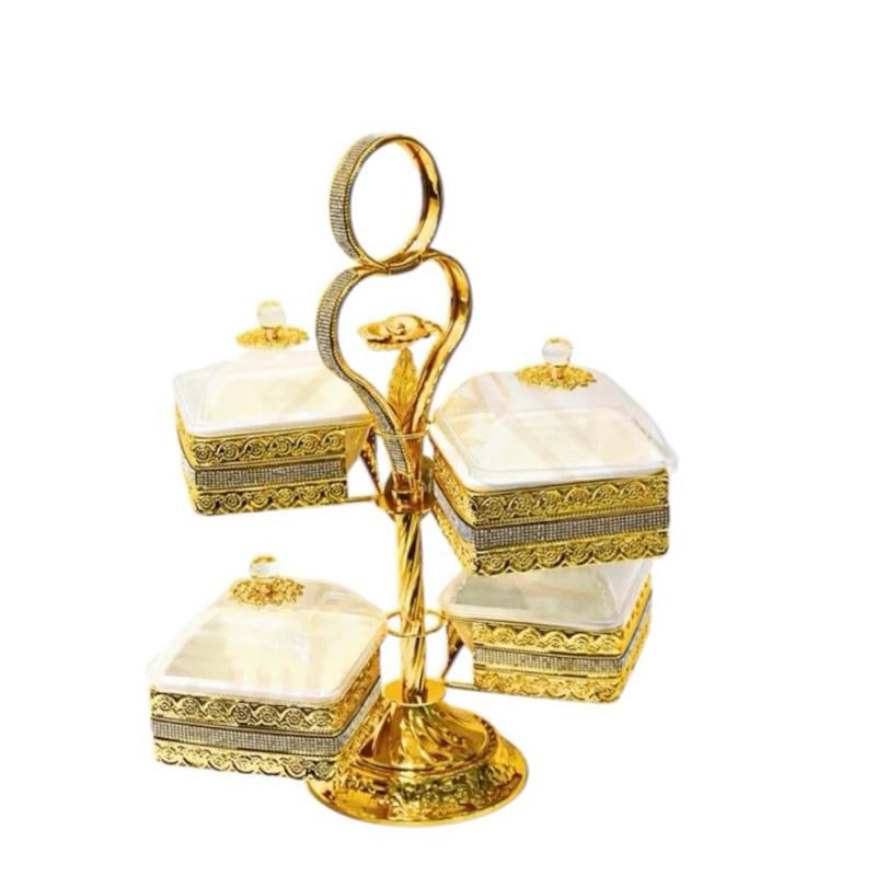 The Luxury 4-Section Serving Dish with Crystal Knob offers a sophisticated way to serve your favorite nuts, dates, and desserts. Its elegant design, topped with a sparkling crystal knob, makes it the perfect centerpiece for formal gatherings or everyday use. With four separate sections, you can easily serve multiple items in a single tray, providing both convenience and style.